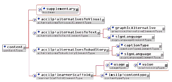 Many of the sub-sections of the content element are namespaced in from the Access for All Learner Information Package (ACCLIP) specification version 1.0 [ACCLIP, 03].
