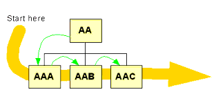 The traversal of the activity tree for flow navigation and for rule evaluation is specified as preorder traversal. See Conceptual Model, section 3.1.3 for more information.