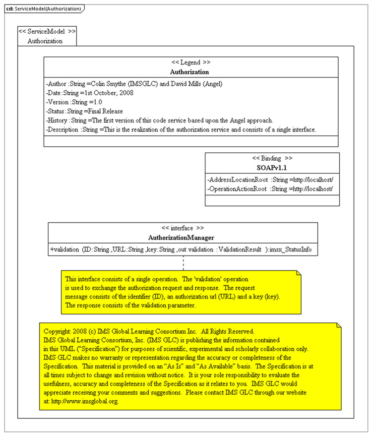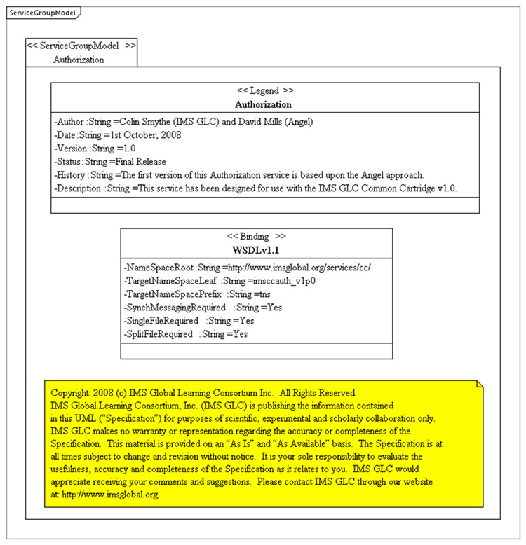 This document contains the authorization web service for Common Cartridge, an open format for the distribution of rich, web-based content. |
