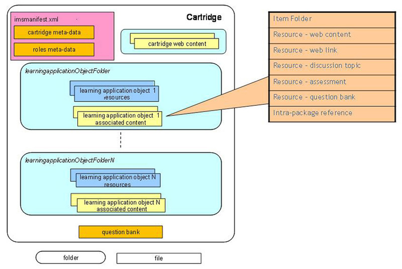 The Common Cartridge defines an open format for the distribution of rich, web-based content. It is designed to ensure the correct installation and operation of content across any Common Cartridge conformant platforms and tools. The specification defines a profile for the use of the following specifications which are (in the versions adopted here), already widely implemented and in use across the community: