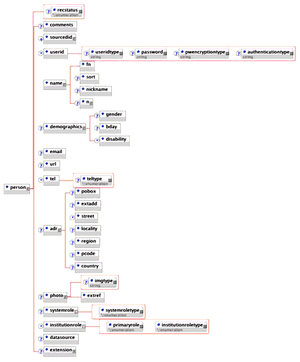 - Support for multiple <sourcedid> and <userid> structures. Password support has been added to the <userid> structure;