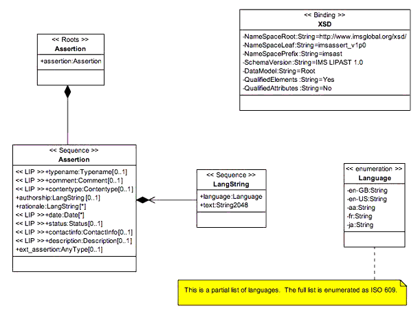 The Assertion class attributes are described in Table 4.1. The Types for these attributes are defined in the 1EdTech Learner Information Package v1.0 specification [LIP, 01].