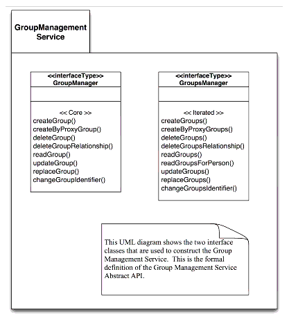 - Adoption - the Group Management Services are based upon the original Enterprise specification data model. While there are significant changes the underlying data model has been maintained and the core Group structures remain.