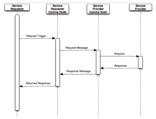 - Synchronous - this is a request/response message exchange in which the service initiator is blocked until the response message is received