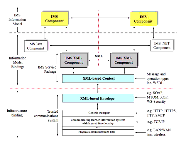 - 1EdTech/GLC XML Components - the application and common services components that are combined to create the e-learning system required. It is assumed that these components exchange information in the form of XML documents;