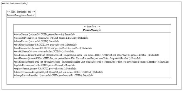 · Multiple Bindings – the Person Management Service information model is defined using the Unified Modeling Language (UML). This enables reliable mapping of the information model into a range of different bindings. The binding of immediate importance is to the Web Services Description Language (WSDL);