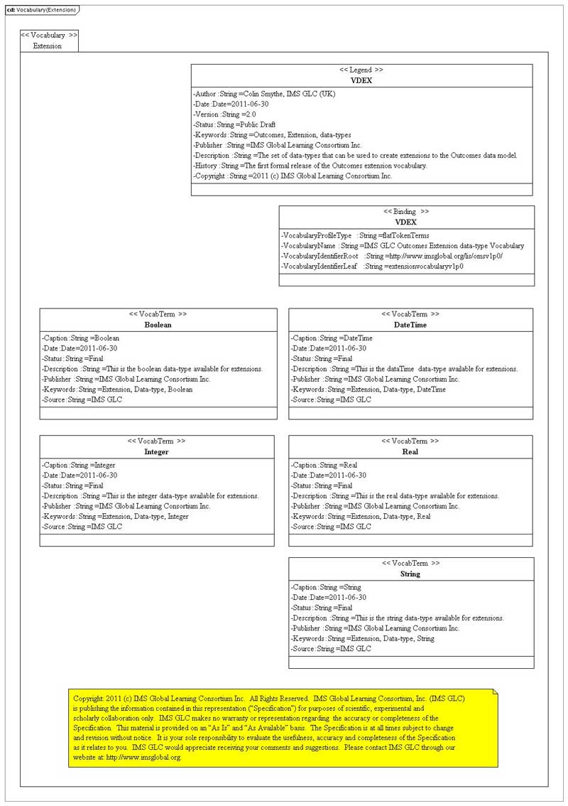• Extension data-type vocabulary – the set of data-types that are permitted for extensions in the Outcomes data model. The PSM for the extension data-type vocabulary is shown in Figure 6.4.