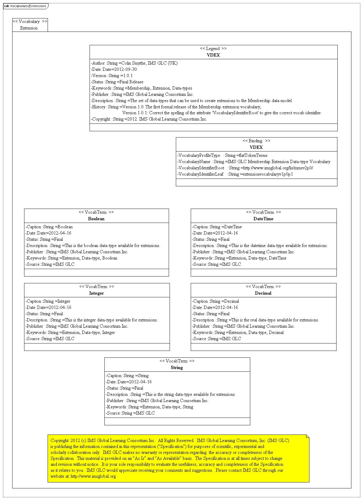 • Extension data-type vocabulary – the set of data-types that are permitted for extensions in the Membership data model. The PSM for this vocabulary is shown in Figure 6.5.