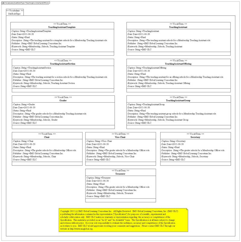 Figure 6.2 The PSM representation of the subroletype vocabulary for the role teaching assistant and officer for the MMS.
