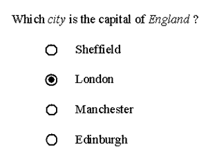 The two examples in Figure 3.3 are based upon different educational objectives but this not a consideration of the specification. The example clearly demonstrates that a multiple-choice question can be rendered in more than one way.