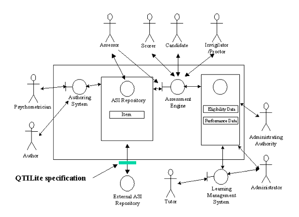 The system model for QTI is shown in Figure 2.1 (this is the same as that described in the QTI: ASI Information Model, [QTI, 02a]).