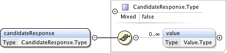 <xs:complexType name="CandidateResponse.Type" mixed="false"><xs:annotation><xs:documentation source="umldocumentation">The CandidateResponse complexType is the container for the response(s) given by the candidate.</xs:documentation></xs:annotation><xs:sequence><xs:element name="value" type="Value.Type" minOccurs="0" maxOccurs="unbounded"/></xs:sequence></xs:complexType>