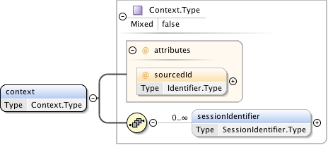 <xs:complexType name="Context.Type" mixed="false"><xs:annotation><xs:documentation source="umldocumentation">This supples the conext informaion for the result information. Each result report has its own identifier. The session identifier during which the results were generated is also supplied.</xs:documentation></xs:annotation><xs:sequence><xs:element name="sessionIdentifier" type="SessionIdentifier.Type" minOccurs="0" maxOccurs="unbounded"/></xs:sequence><xs:attribute name="sourcedId" use="optional" type="Identifier.Type"/></xs:complexType>