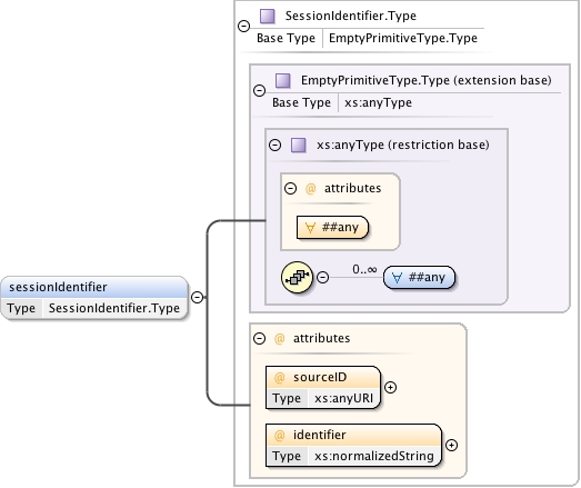 <xs:complexType name="SessionIdentifier.Type"><xs:annotation><xs:documentation source="umldocumentation">The identifier for the session during which the associated results were generated.</xs:documentation></xs:annotation><xs:complexContent><xs:extension base="EmptyPrimitiveType.Type"><xs:attribute name="sourceID" use="required" type="xs:anyURI"/><xs:attribute name="identifier" use="required" type="xs:normalizedString"/></xs:extension></xs:complexContent></xs:complexType>