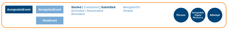 A Caliper Entity is a generic type that represents objects that participate in learning-related activities. A variety of Entity subtypes have been defined in order to better describe people, groups, organizations, digital content, courses, software applications, and other objects that constitute the “stuff” of a Caliper Event. Like an Event, an Entity is considered semi-structured data consisting of an unordered set of key:value pairs.