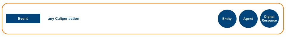 Entity: an object or a thing that participates in learning-related activity. Caliper Entity types provide coarse-grained representations of applications, people, groups and resources that constitute the “stuff” of a Caliper Event. Each Entity corresponds to a node in a directed graph.