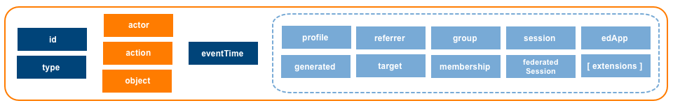 Envelope: a data structure that serves as a transport container of Caliper Event and Entity data. The envelope also includes metadata about the emitting Sensor and the data payload.