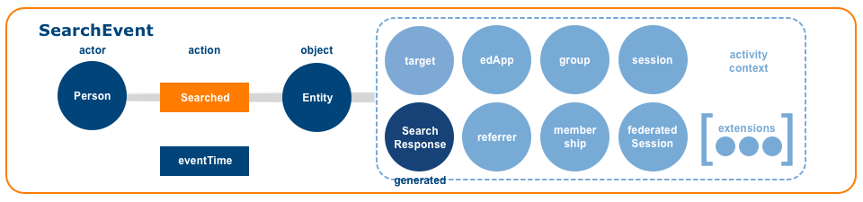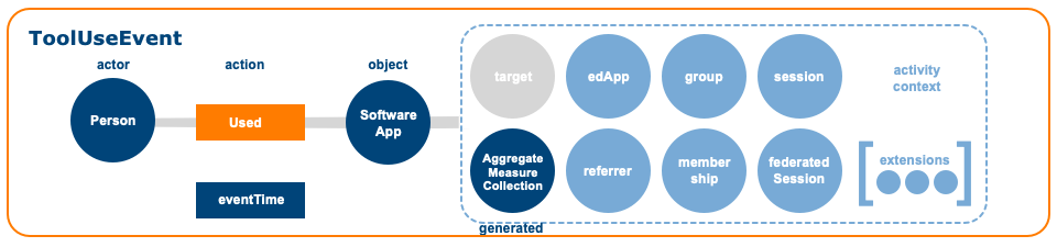 The Caliper information model defines a set of concepts, rules, and relationships for describing learning activities. Each activity domain modeled is described in a Caliper Profile. Each profile is composed of one or more Event types. Each Event defines a controlled vocabulary of actions undertaken by learners, instructors, and others, that are scoped to the event. Various Entity types representing people, groups, and resources are provided in order to better describe both the relationships established between participating entities and the contextual elements relevant to the interaction.