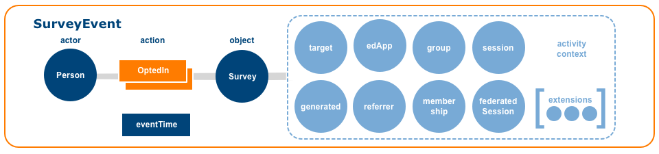Profile: models a learning activity or a supporting activity that helps facilitate learning. Each profile provides a domain-specific set of terms and concepts that application designers and developers can draw upon to describe common user interactions in a consistent manner using a shared vocabulary.