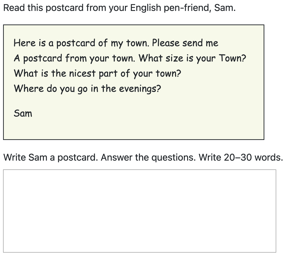 Items are typically made up of a stimulus (or stimuli), questions (prompts) and a response area (interactions). While a simple question might include a short prompt and a single interaction, questions can also include long text passages as the stimulus, and may have several interactions as part of the same question, or include follow-up questions. A more detailed explanation of the structure of a QTI item can be found in Section 3 of this guide.