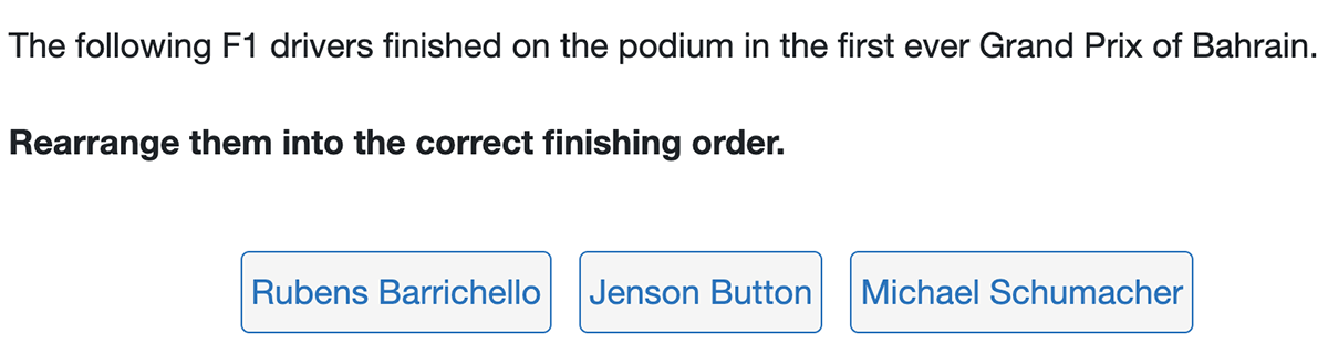This document contains examples of QTI 3. Many of the examples are illustrated by screenshots or rendered views of the items, which are designed to illustrate how a system might implement the specification. This is a guide to best practices for QTI 3 implementation, and examples are for illustrative purposes.